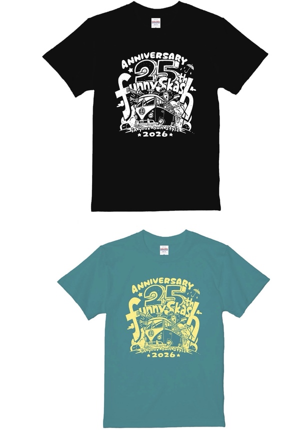 今年結成25周年を迎えるfunnySkashのオリジナル記念Tシャツの販売が決定!